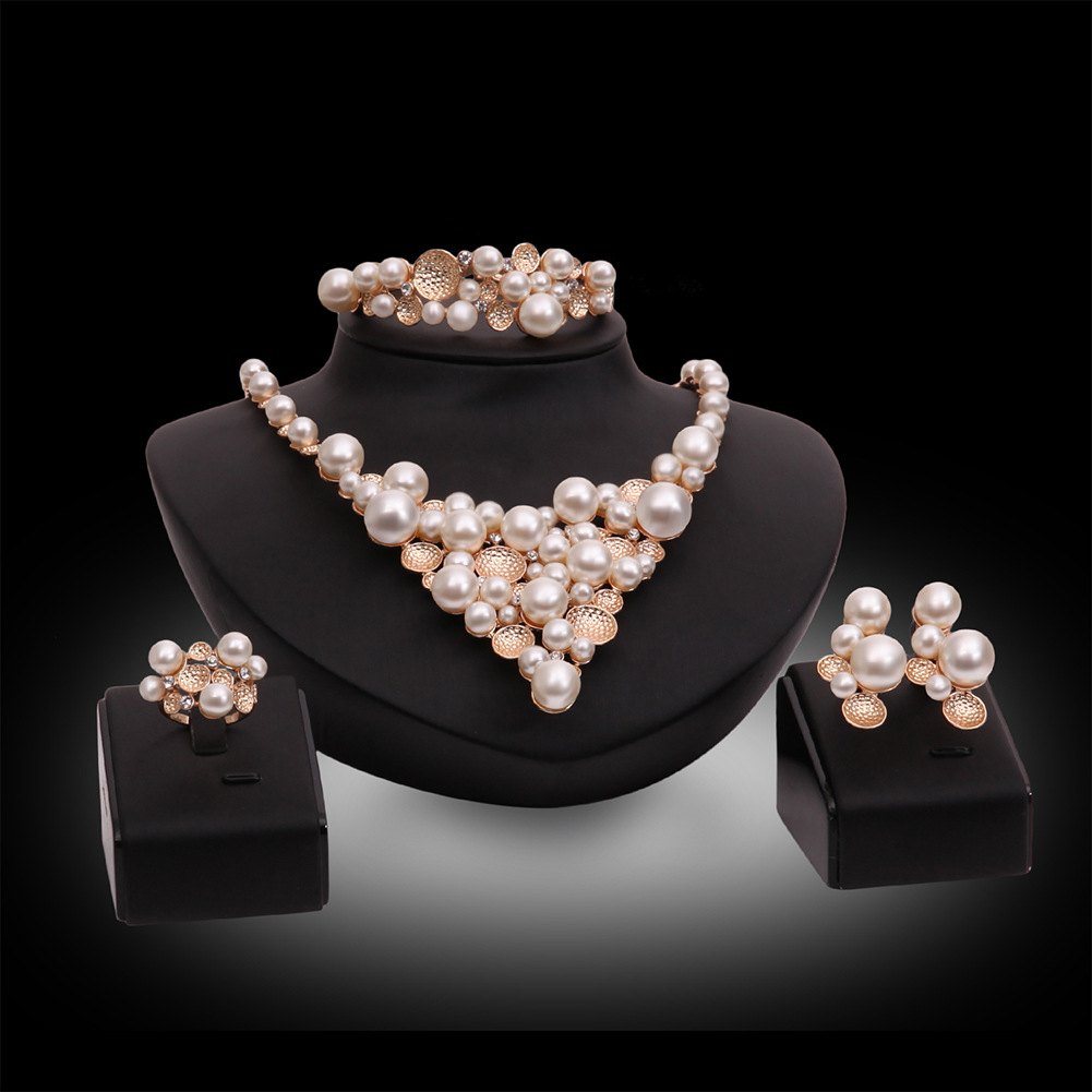 Asian gold geometric wave temperament pearl earring set